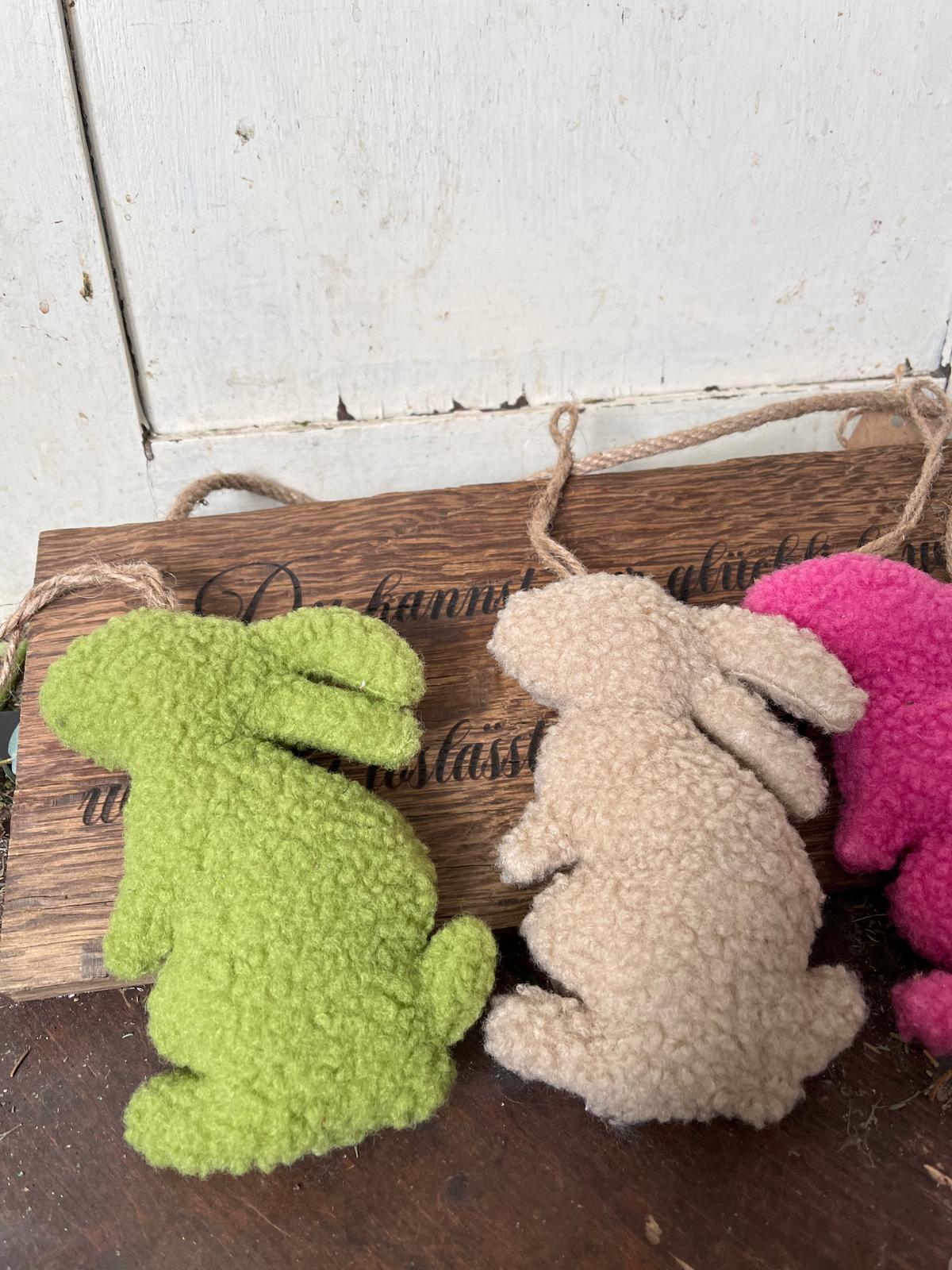 Deko-Hase zum Aufhängen | 15x11,5 cm | 4 Farben zur Auswahl | Osterhase Anhänger | Handgemachte Frühlingsdeko