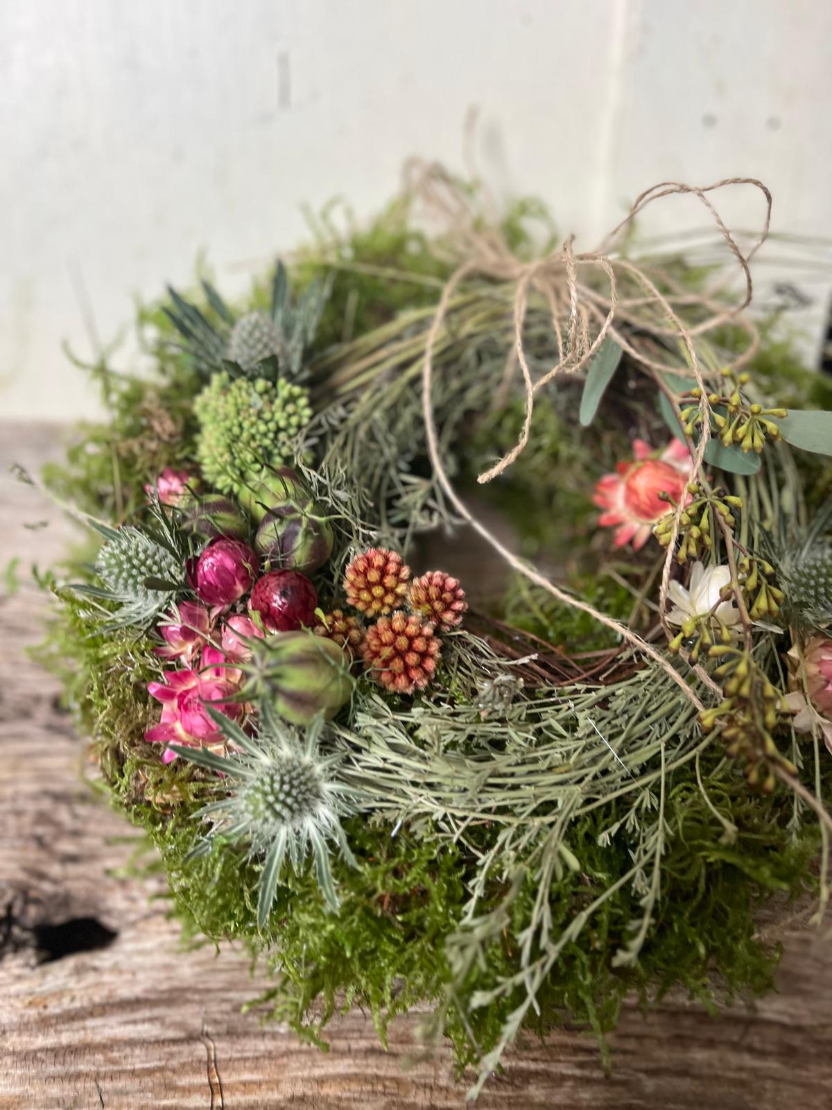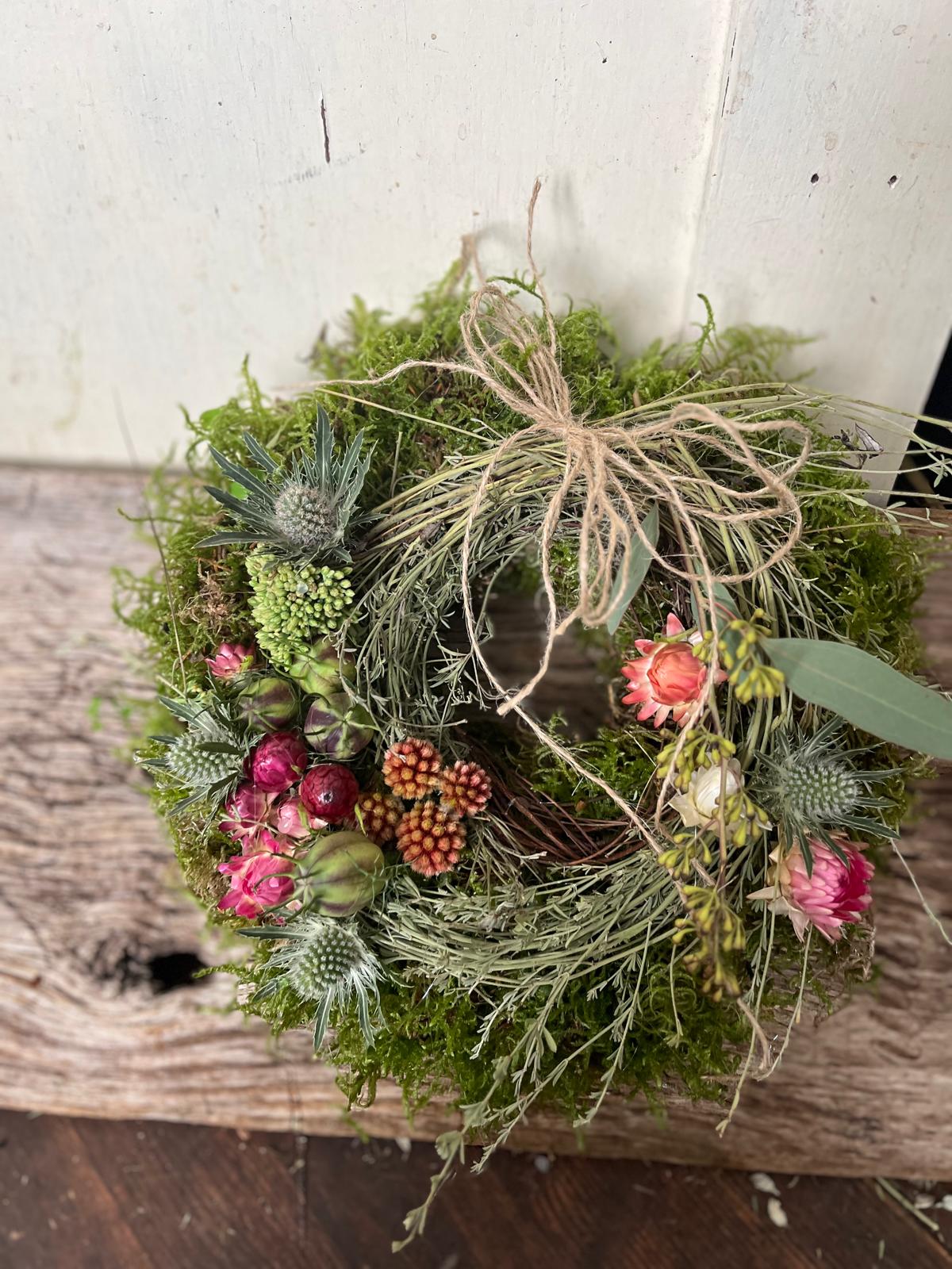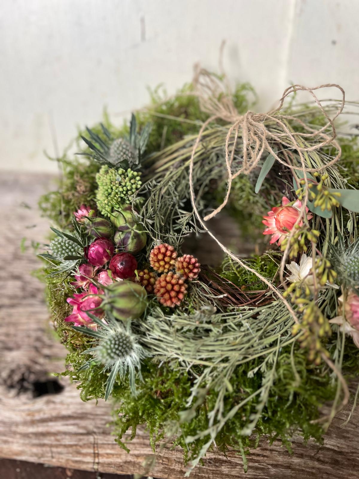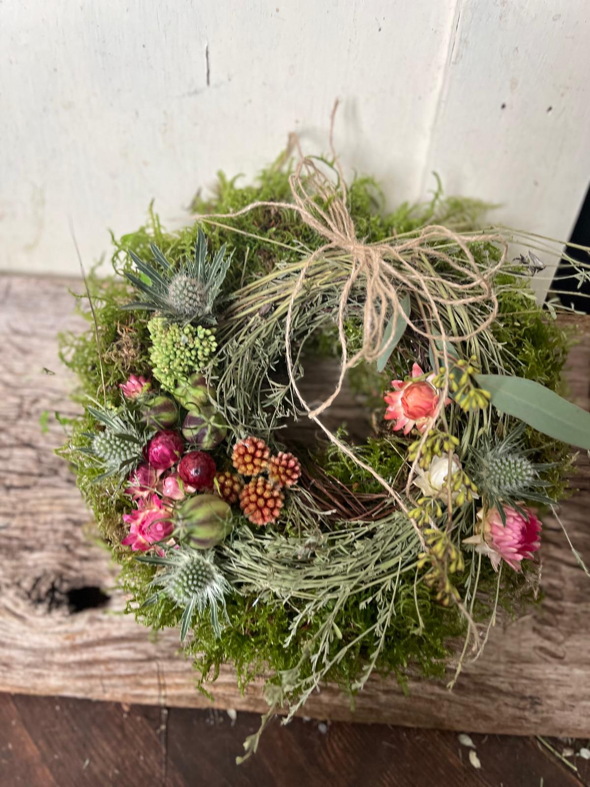 Dieser handgefertigte Kranz ist die perfekte Ergänzung, um die Gemütlichkeit des Herbstes in Ihr Zuhause zu bringen. Jeder Kranz ist ein Unikat, liebevoll aus echten, natürlichen Materialien gefertigt.