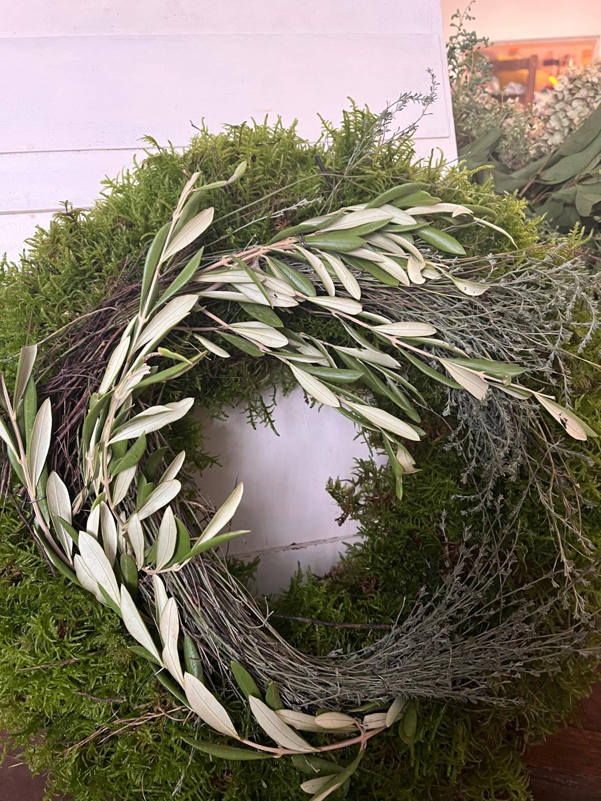 Handgefertigter Kranz aus Moos, Olive und Thymian