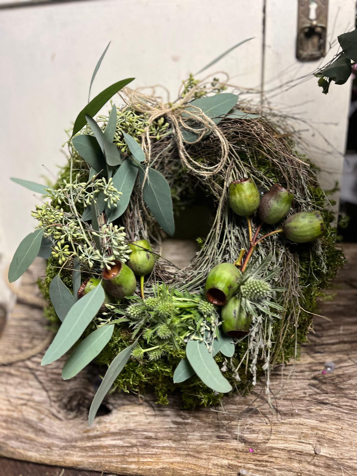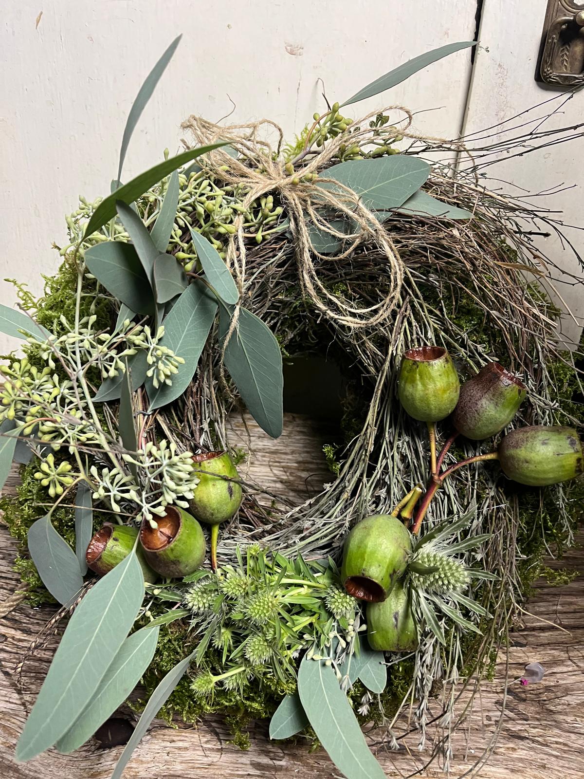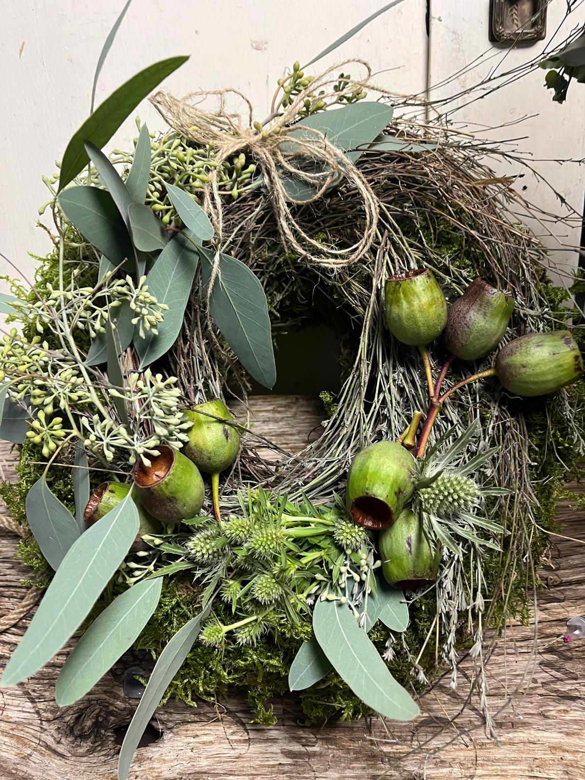 Kranz mit Eukalyptus & Disteln: Zeitlose Deko