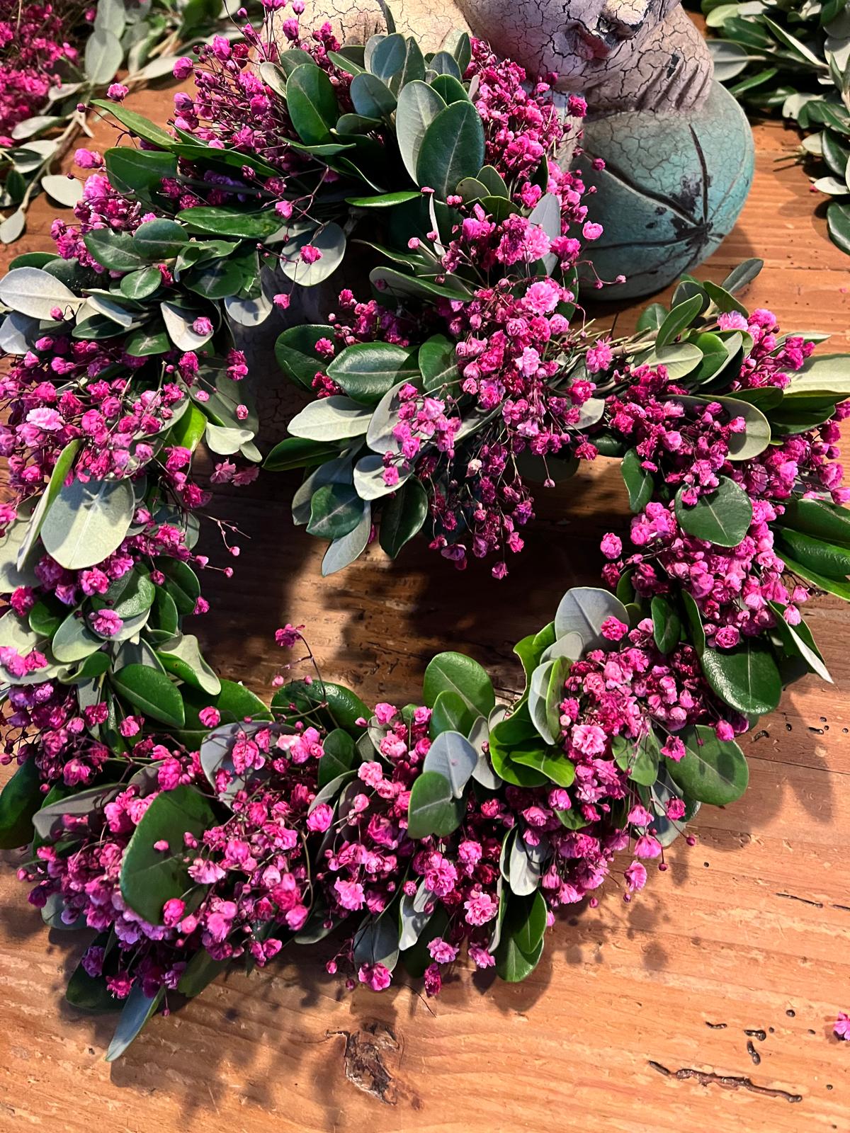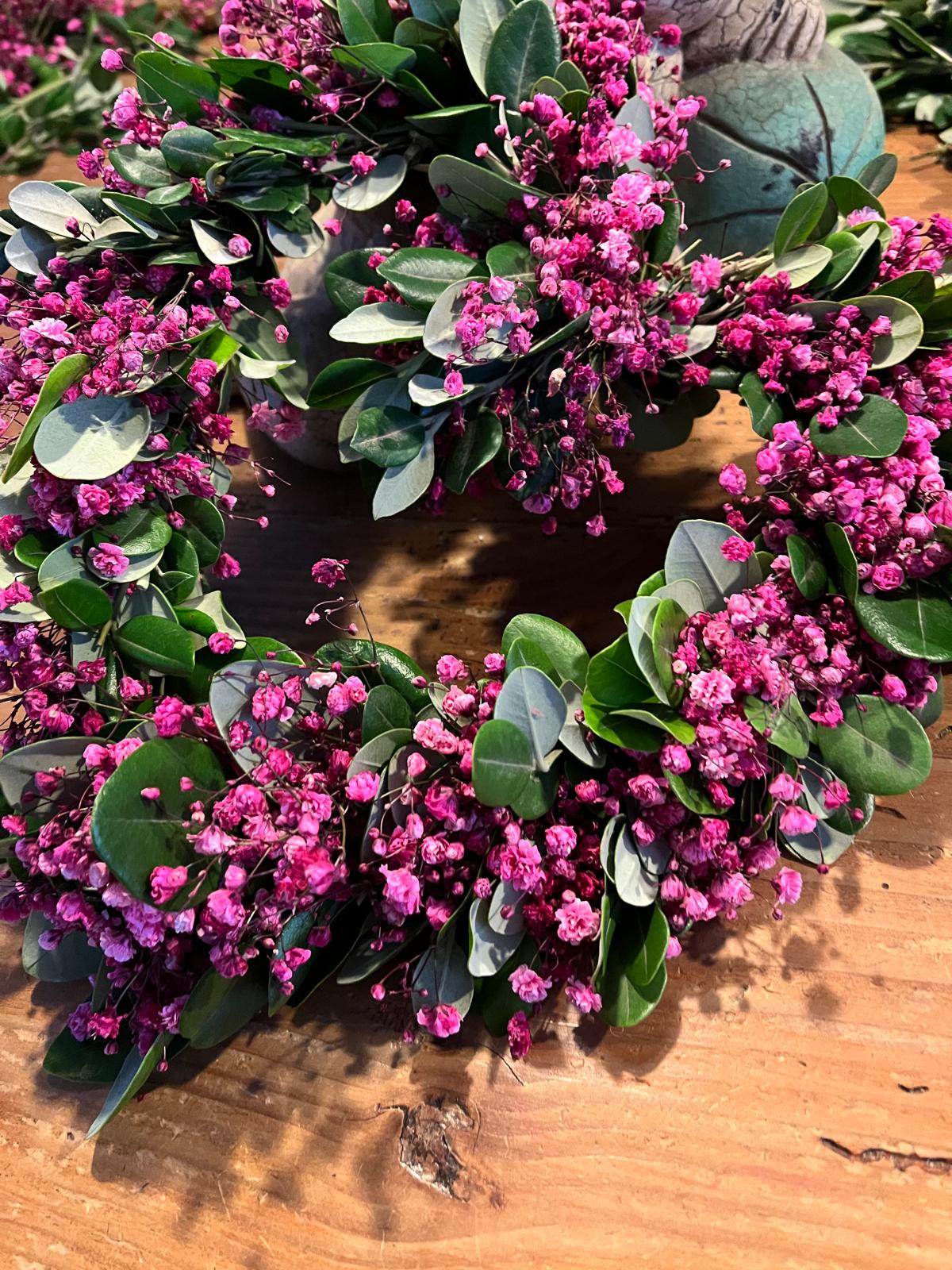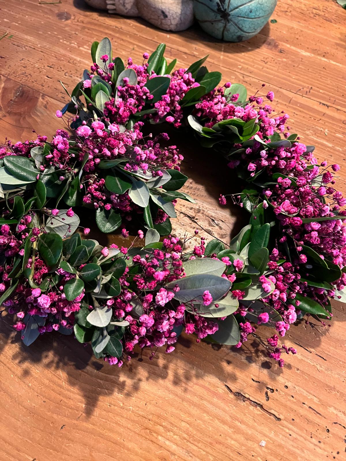 Das Herz wird frisch gebunden und trocknet mit der Zeit wunderschön ein.