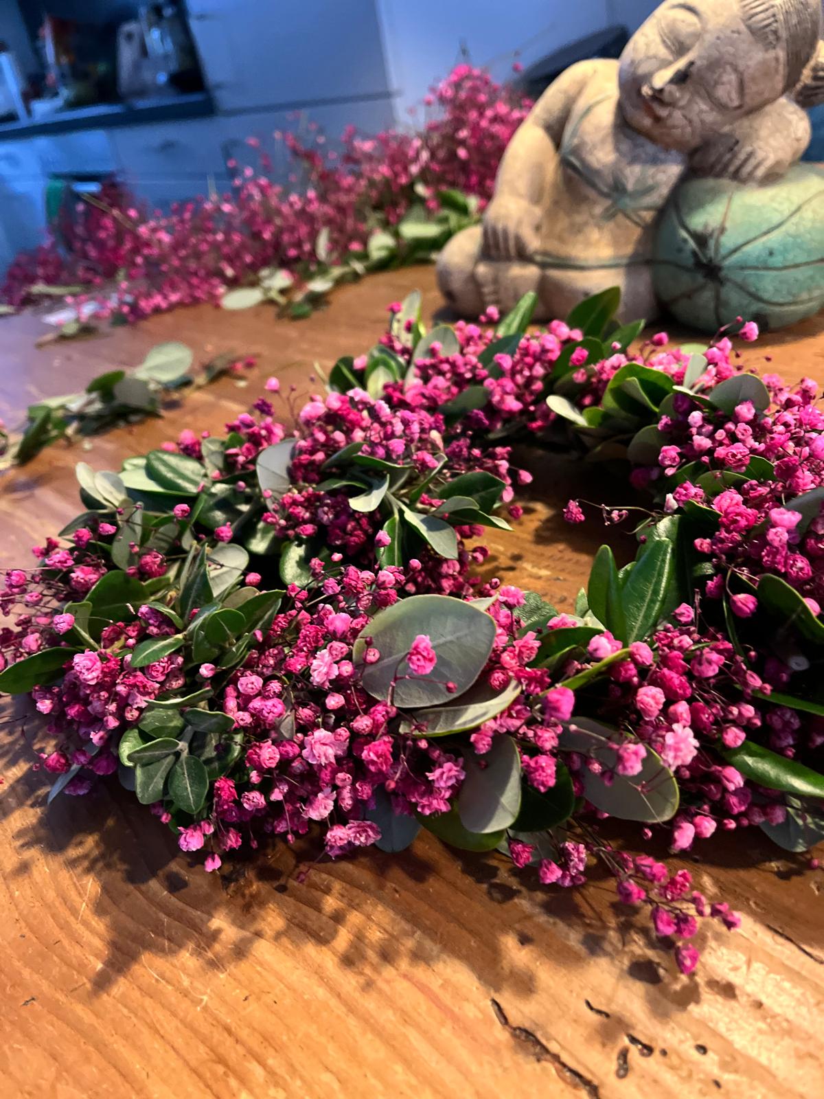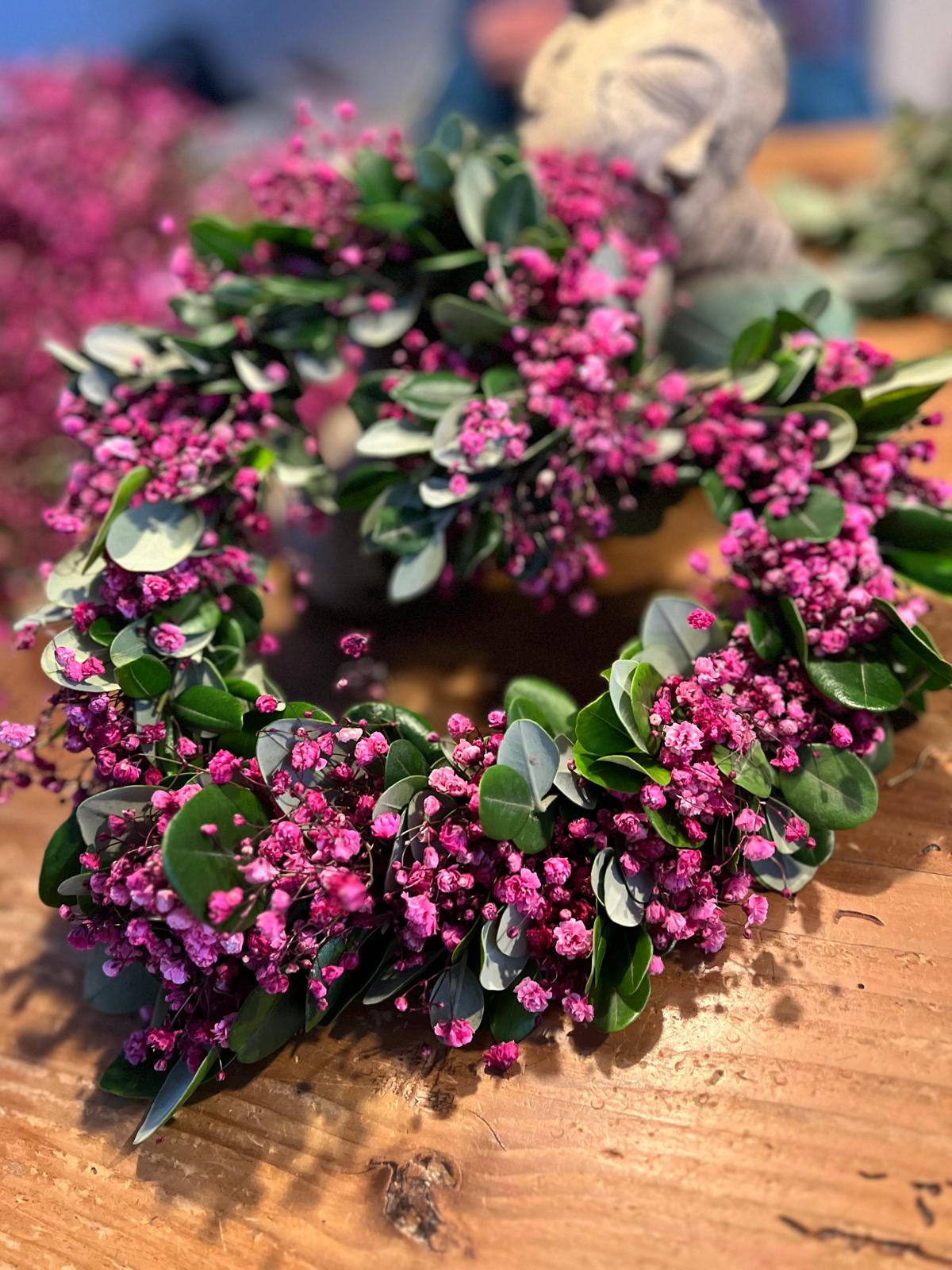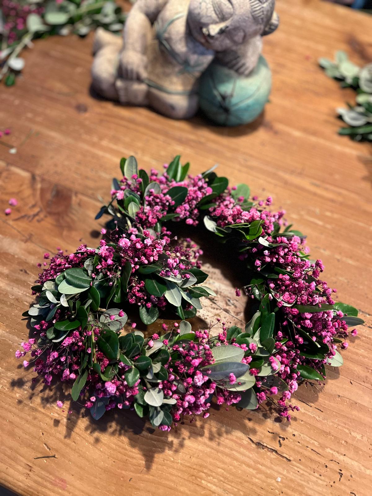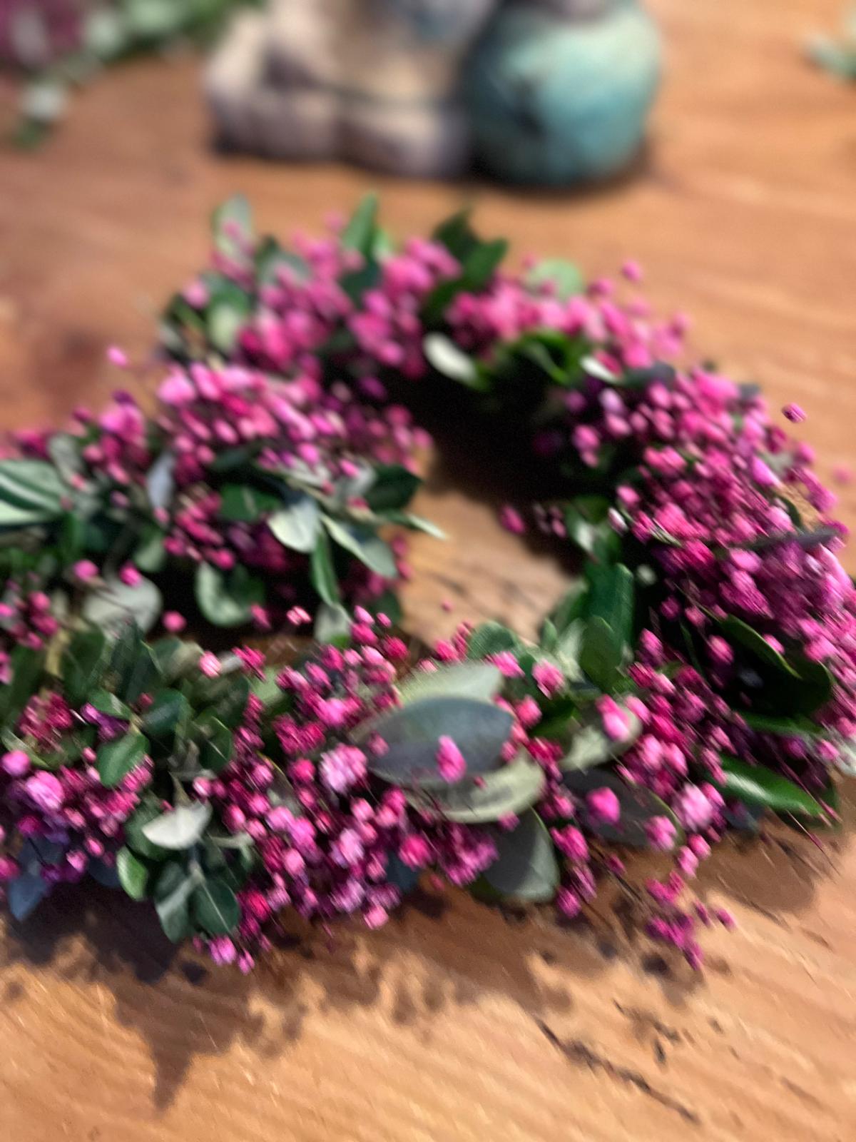 Das Herz wird frisch gebunden und trocknet mit der Zeit wunderschön ein.
