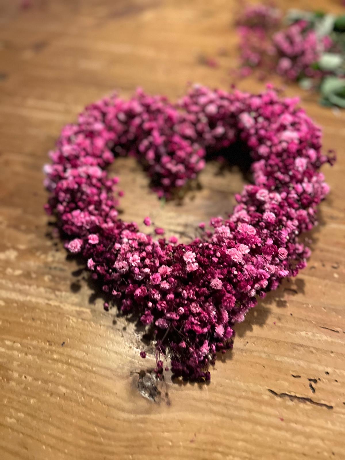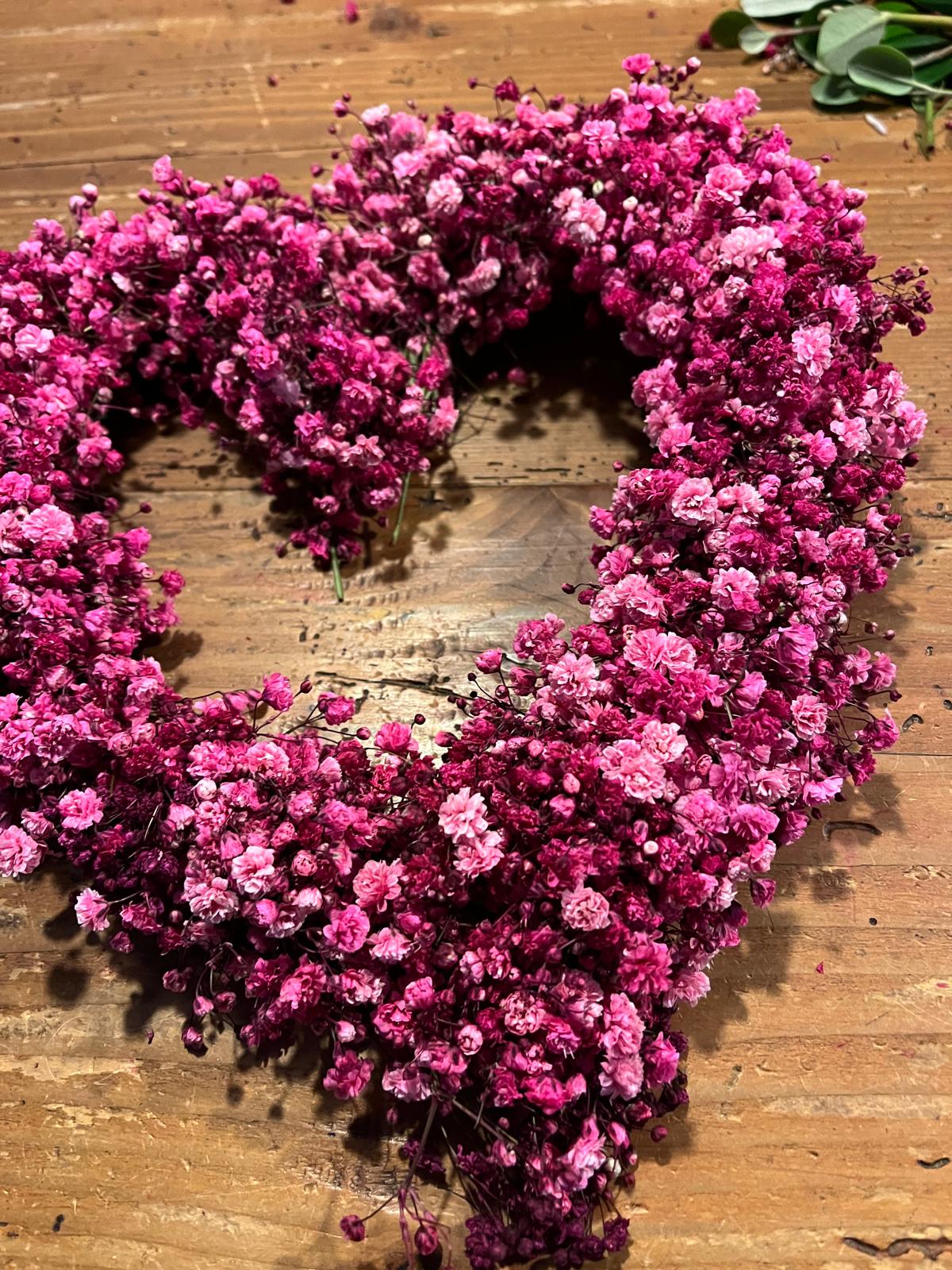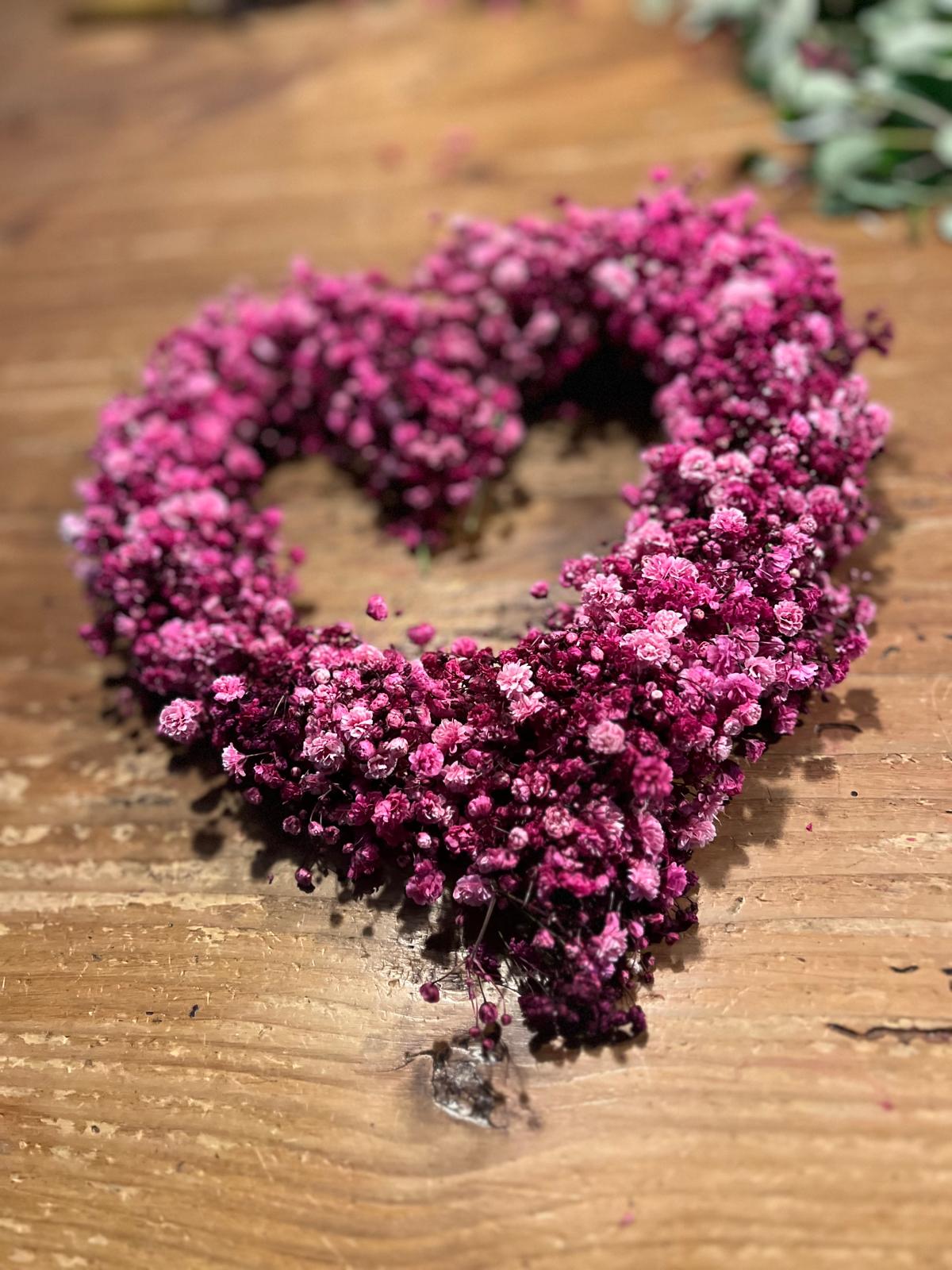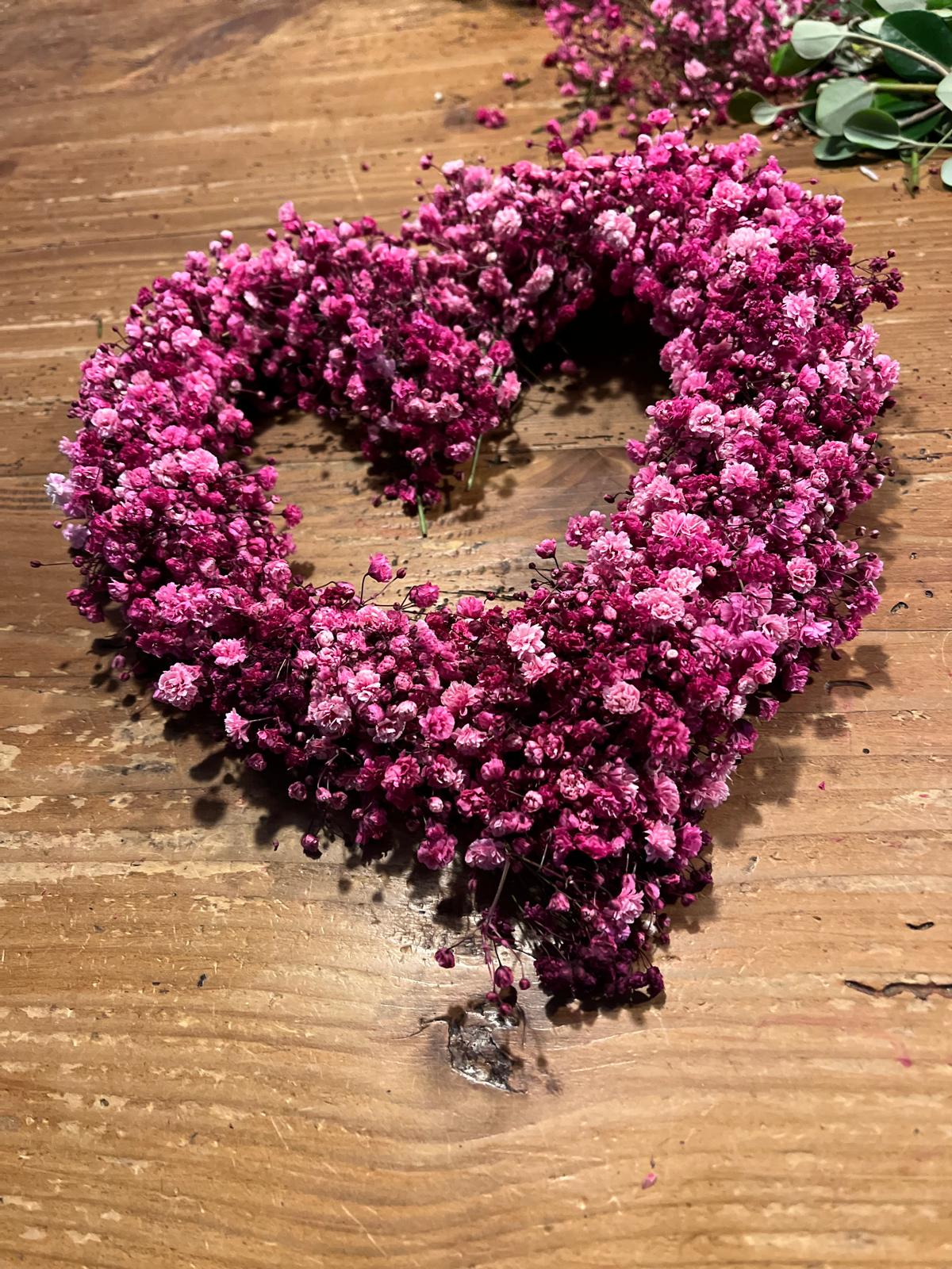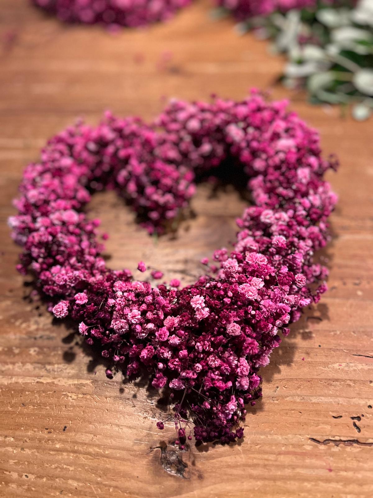 Das Herz wird frisch gebunden und trocknet wunderschön ein, wodurch es lange haltbar bleibt.