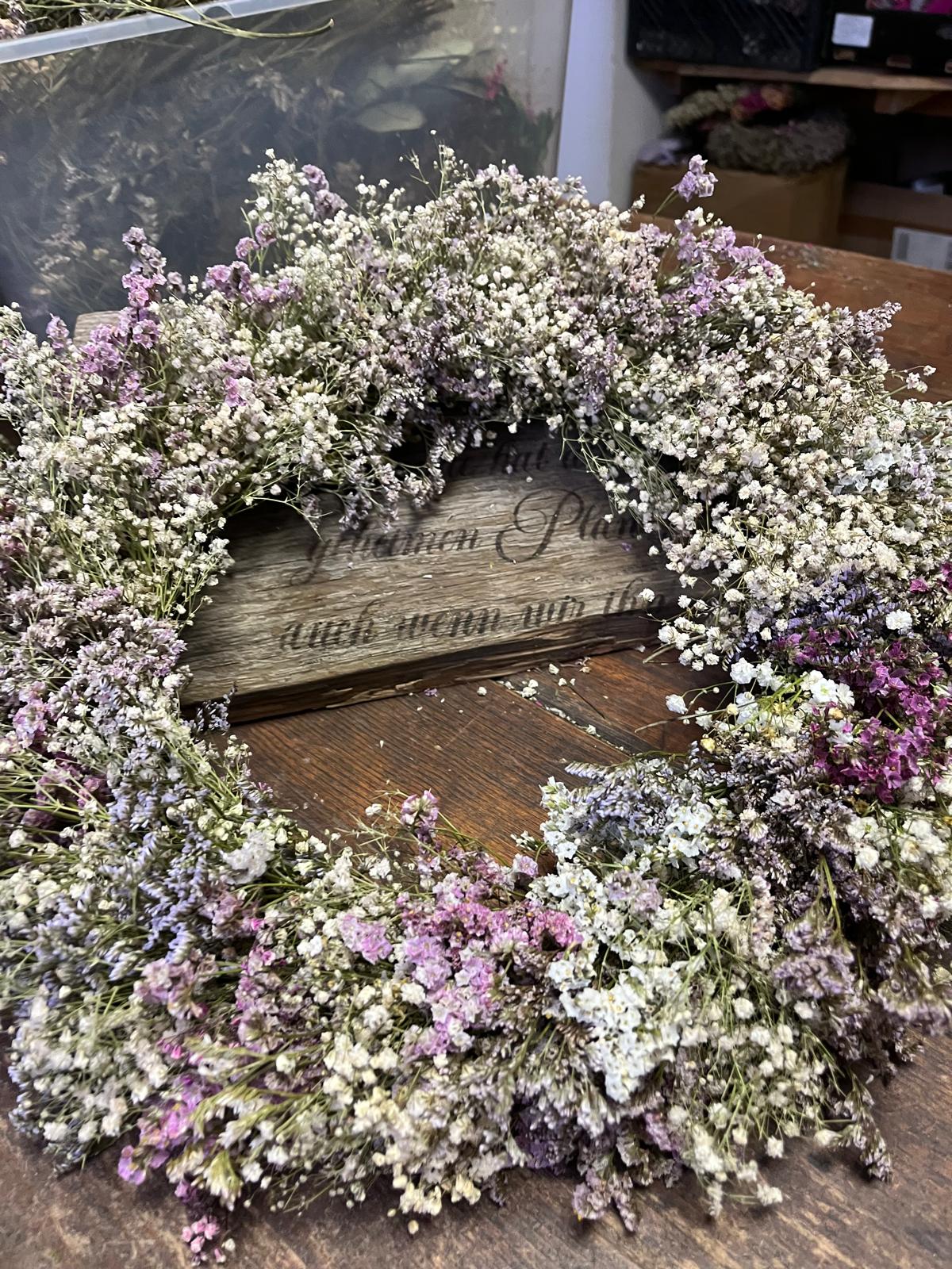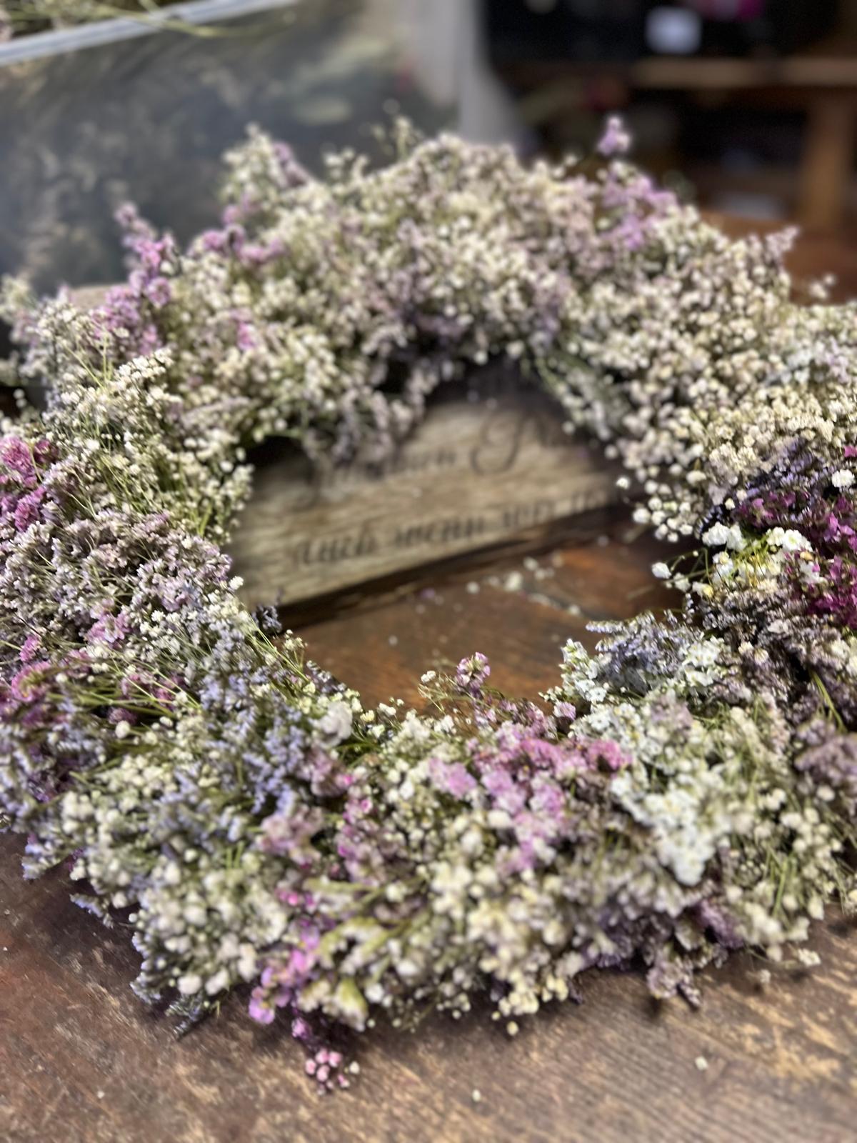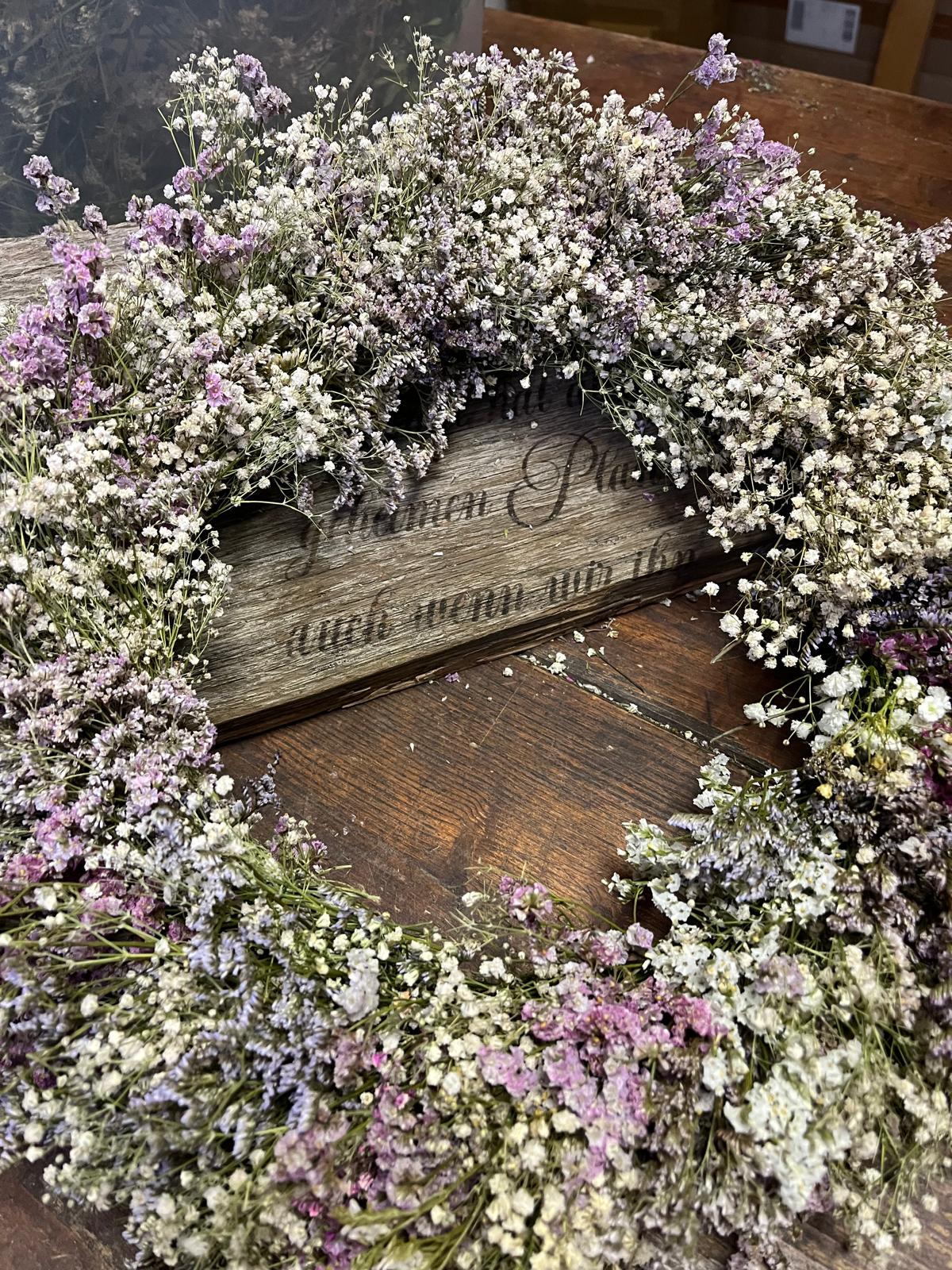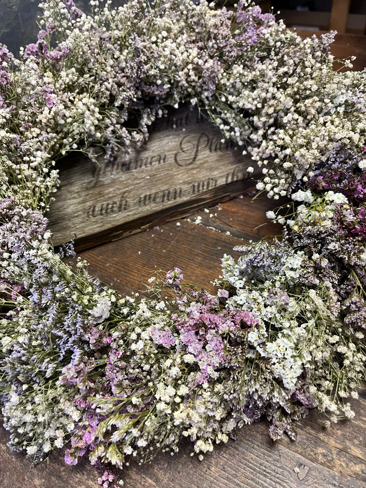 Da es sich um handgemachte Produkte mit echten Trockenblumen handelt, kann der Kranz in Form und Farbe leicht variieren – jedes Stück ist ein Unikat.