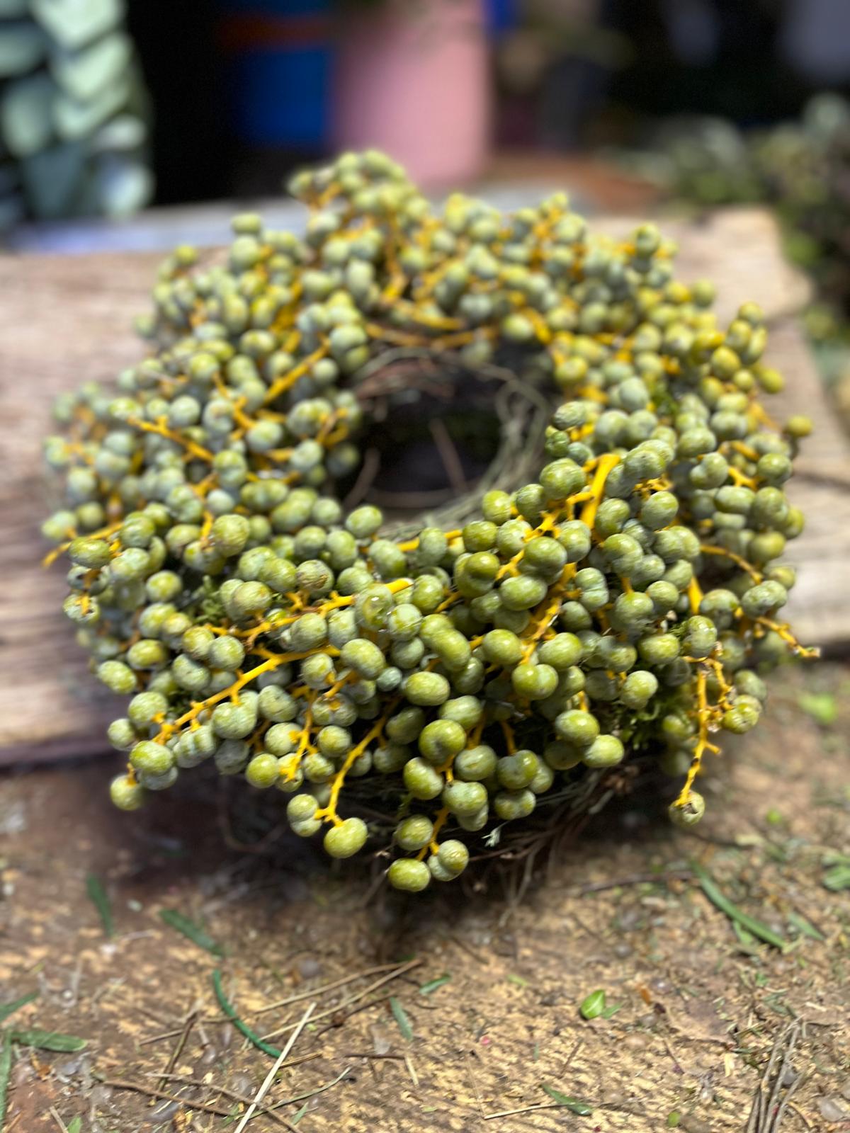 Dank seiner vielseitigen Machart kannst du diesen Kranz als stilvollen Akzent auf den Tisch stellen – perfekt in Kombination mit einer Kerze in der Mitte – oder ihn als einladenden Gruß aufhängen (an der Tür oder Wand).