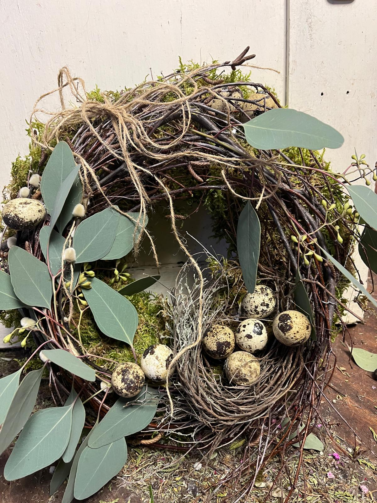 Natur pur für dein Osterfest – Detailverliebter Kranz mit Eukalyptus & Wachteleiern