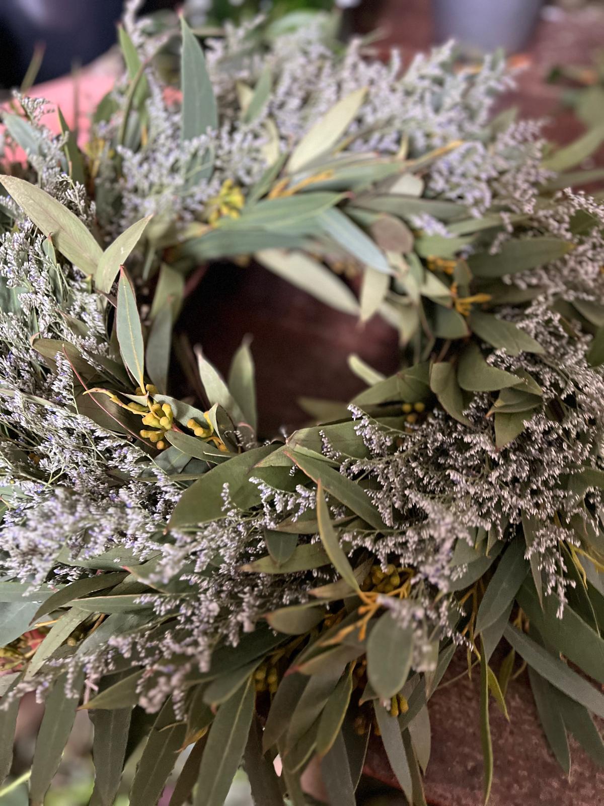 Trockenkranz aus Eukalyptus & Strandflieder – Handgemachter Naturkranz für Tür oder Tisch