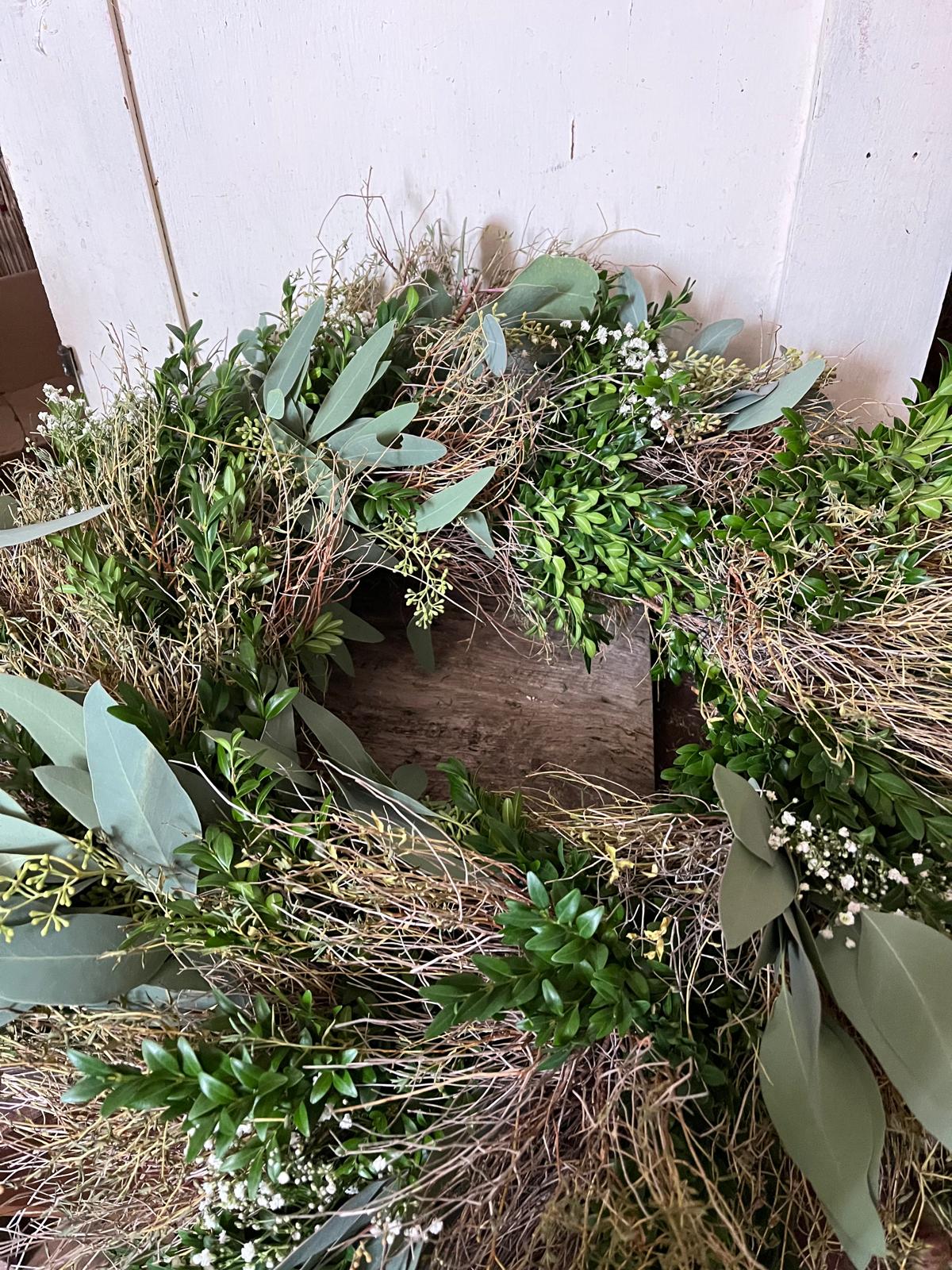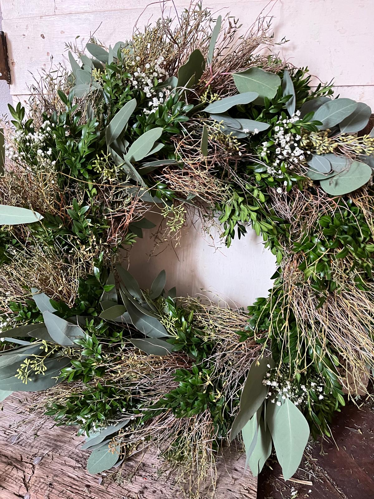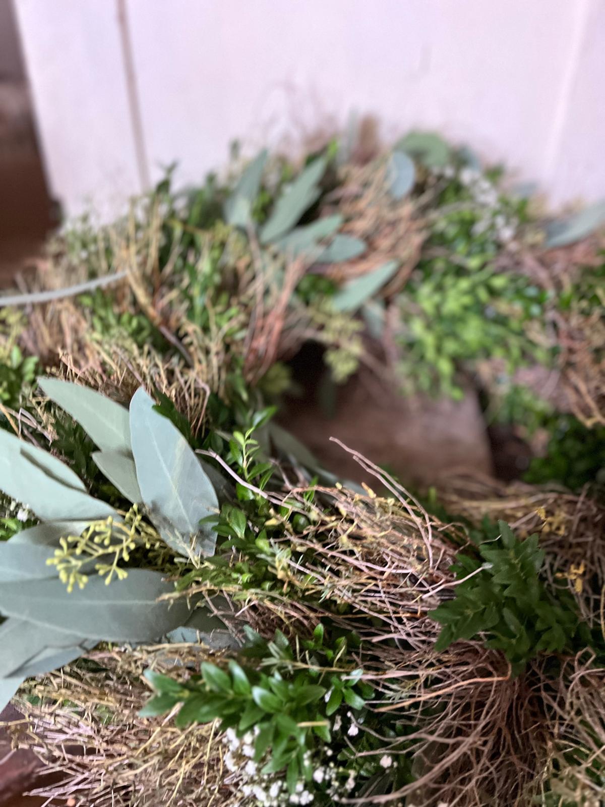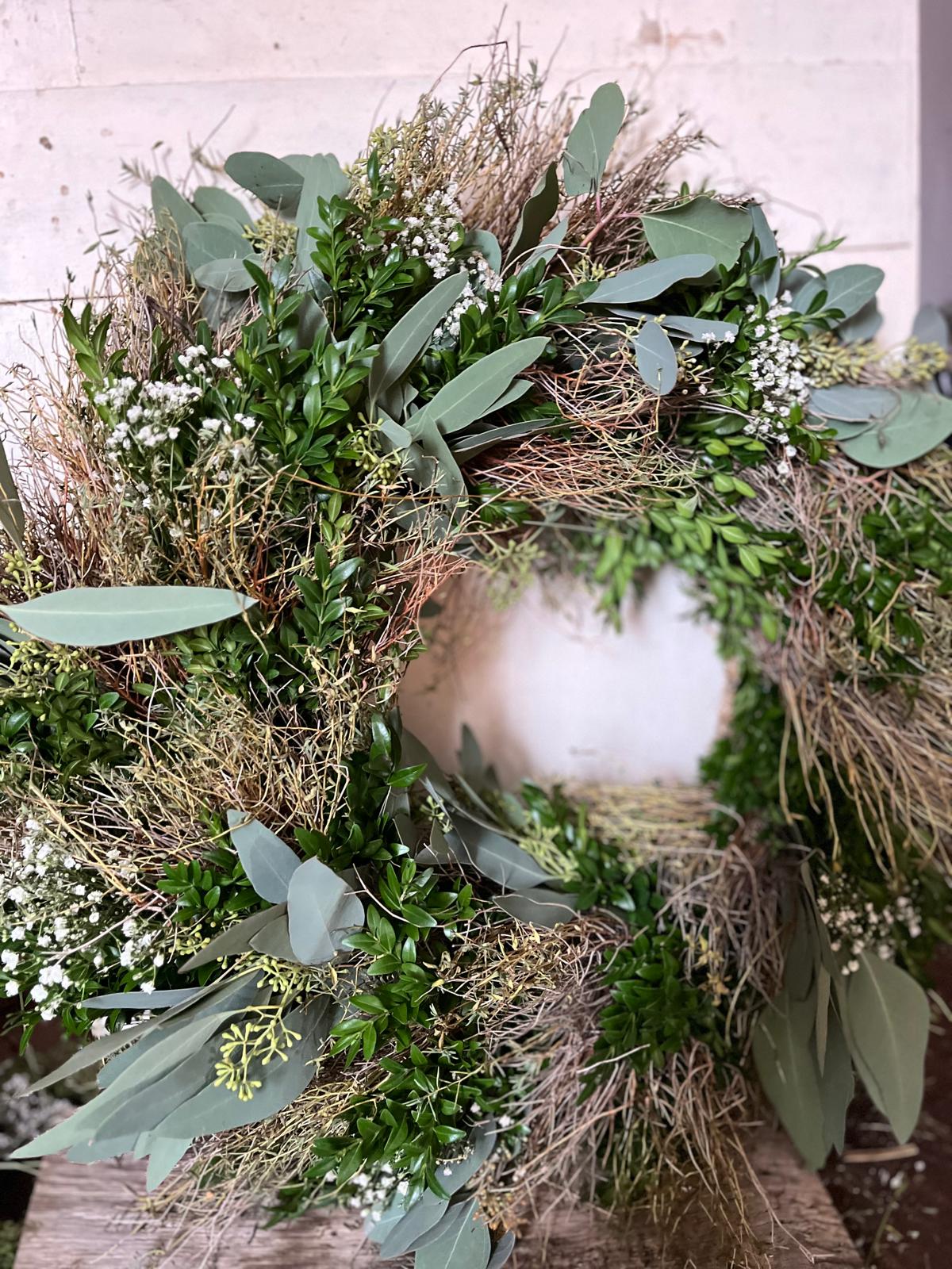 Zeitloser Eukalyptus-Kranz mit Buchsbaum & Thymian – Ganzjahresdeko, Türkranz Unikat