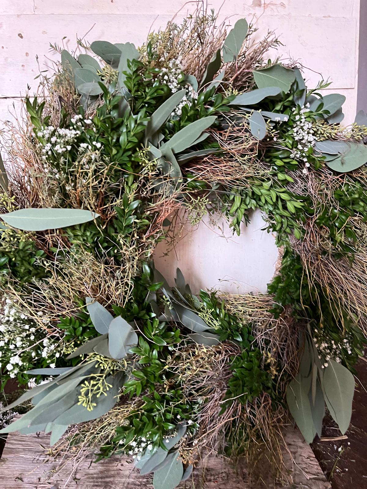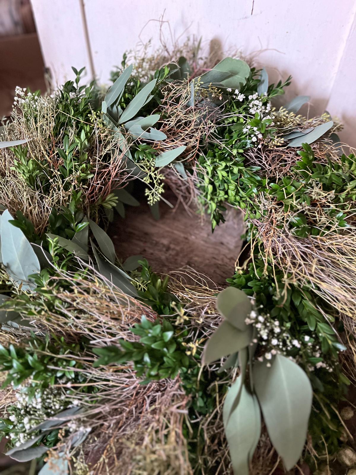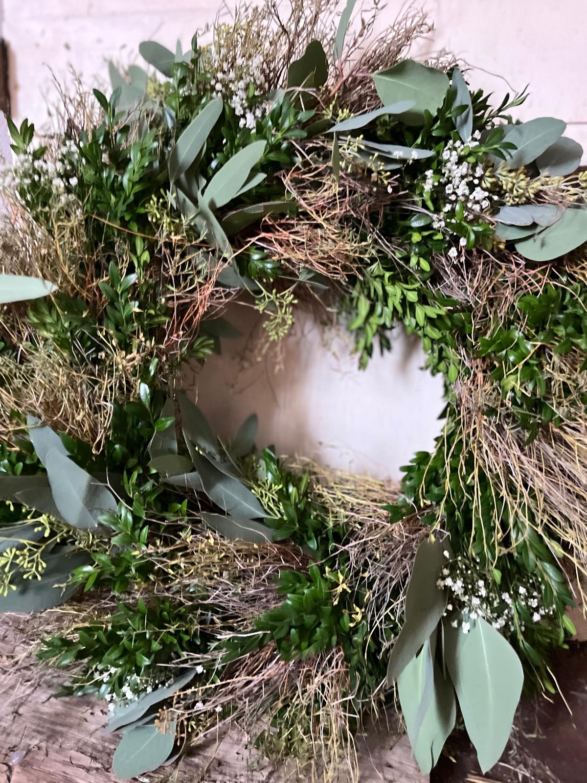 Handgefertigtes Unikat: Jeder Kranz wird individuell für Sie gebunden.